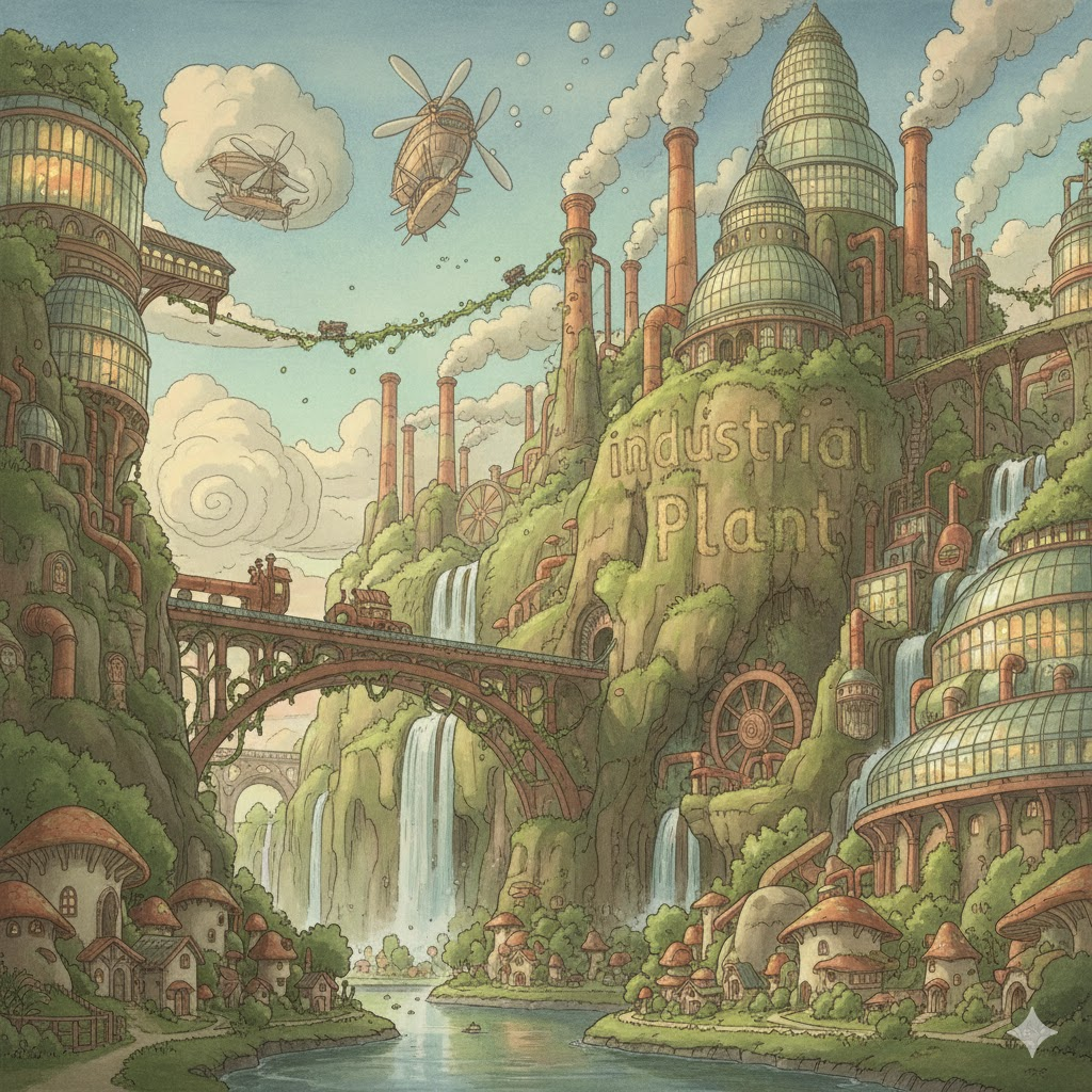 공장, 설비, 식물. 에너지를 생산하거나, 물질을 처리하거나, 씨앗을 심거나, 생태계를 이루는 것.
