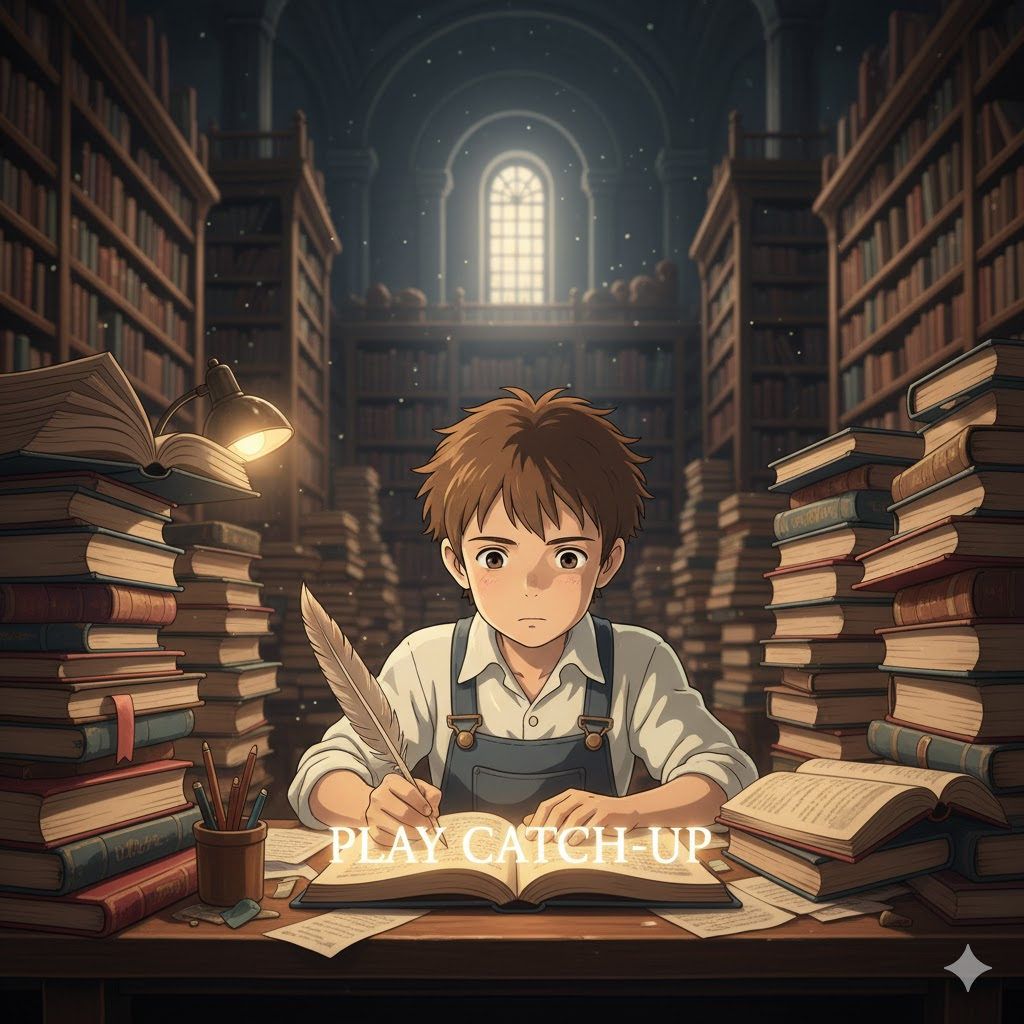 - After missing a month of school, the student had to play catch-up with all her classes. (한 달간 결석한 후, 그 학생은 모든 수업을 따라잡기 위해 분투해야 했다.)