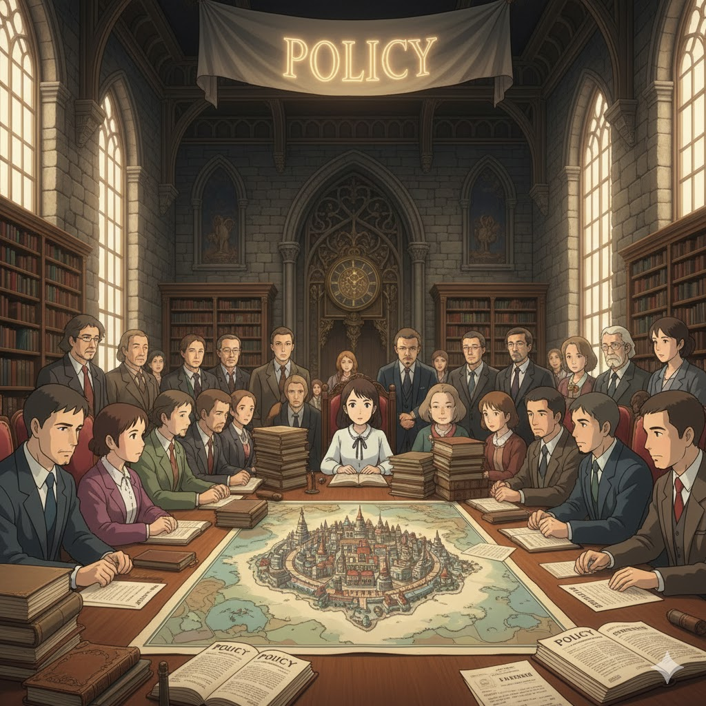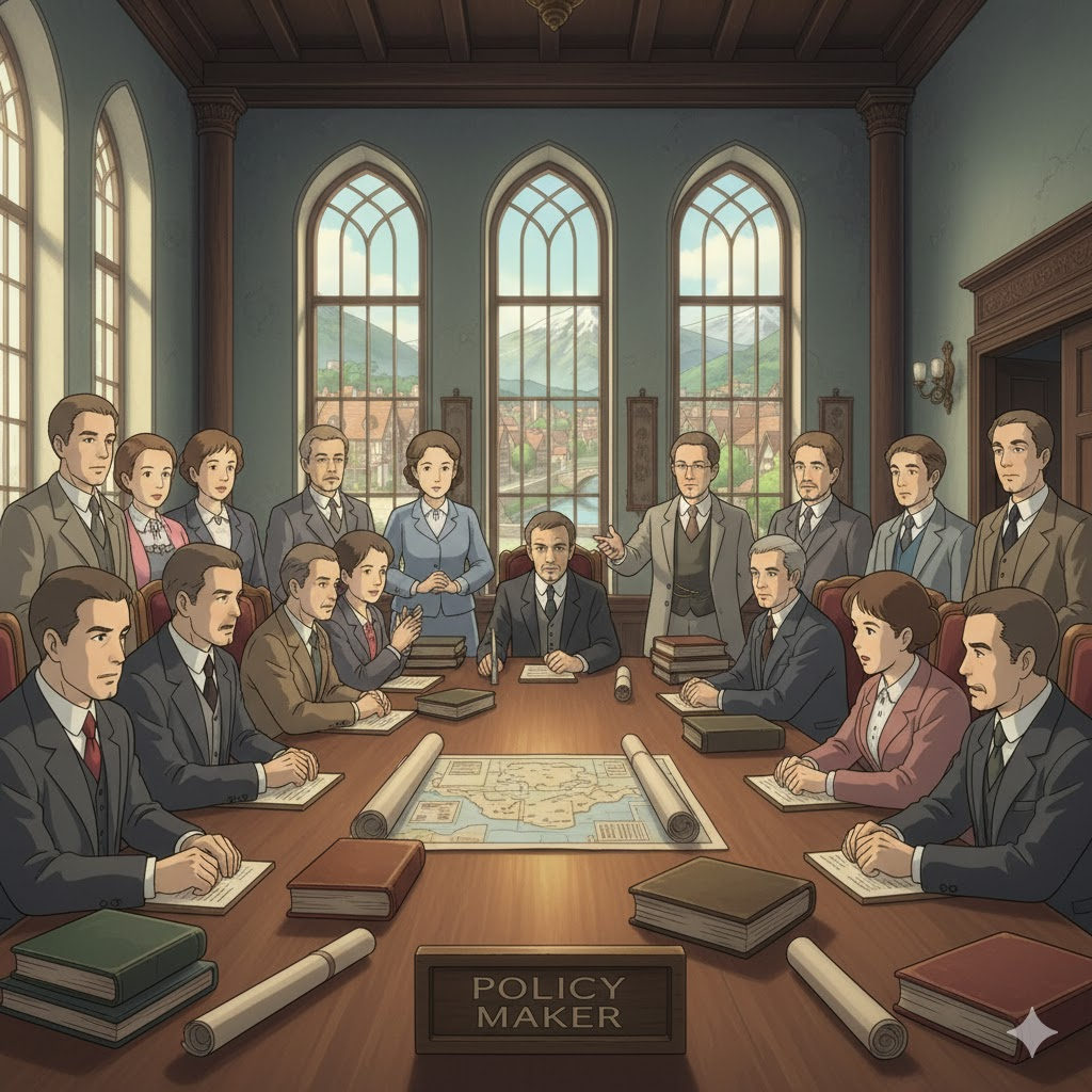 - 해석: 정책의 내용을 설계하고 최종 결정을 내리는 권한을 가진 정부나 기관의 인물.