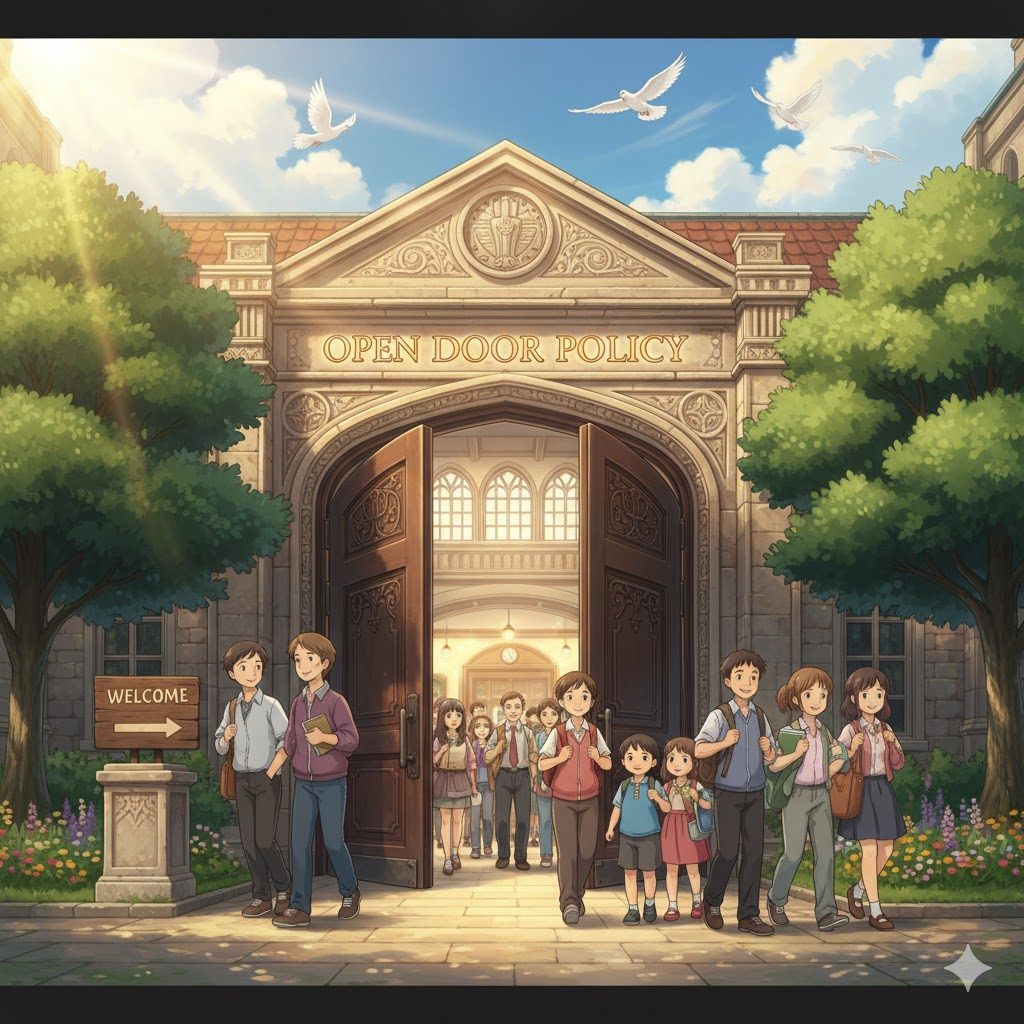 - 해석: 장벽이나 제한을 최소화하고 외부와의 교류, 무역, 또는 이민을 허용하는 방침. (폐쇄 정책과 대비)