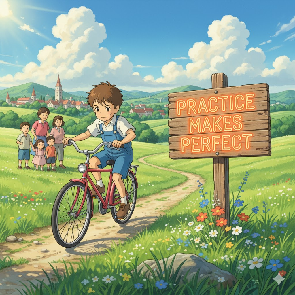 - 해석: 반복적인 연습을 통해 기술이나 능력을 완벽하게 숙달할 수 있다는 격언.