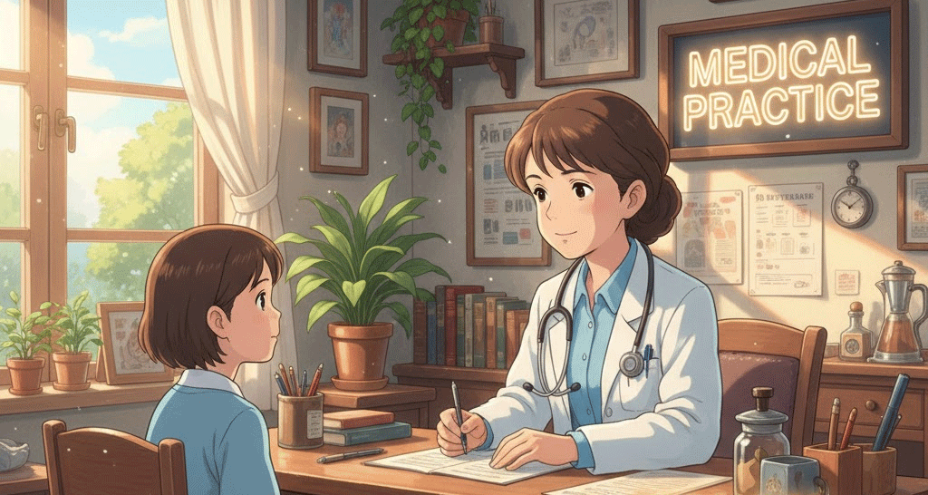 - 해석: 의사가 환자를 진단, 치료하고 건강을 관리하는 전문적인 활동이나 진료소.