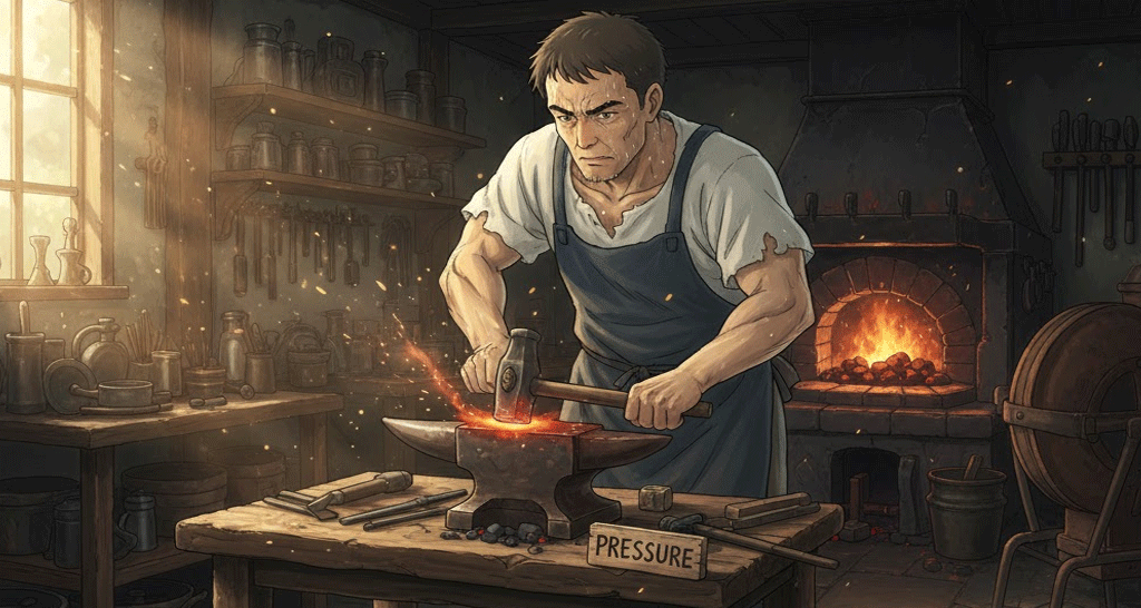 pressure [ˈpreʃər] 물리적·정신적 부담, 긴장감 내포