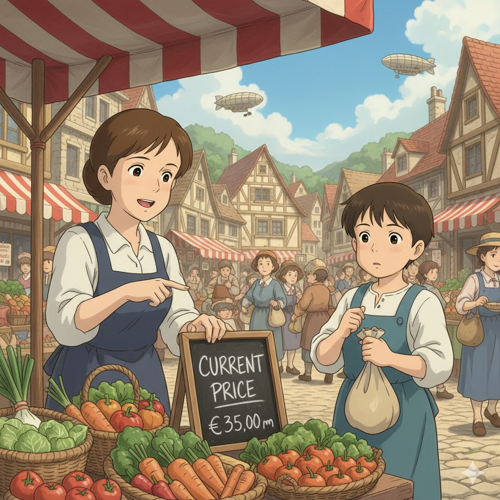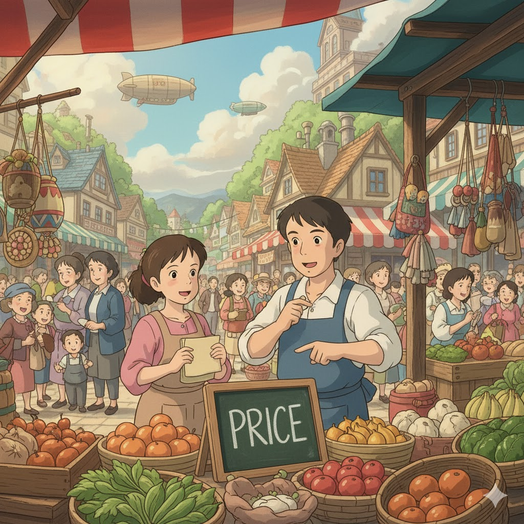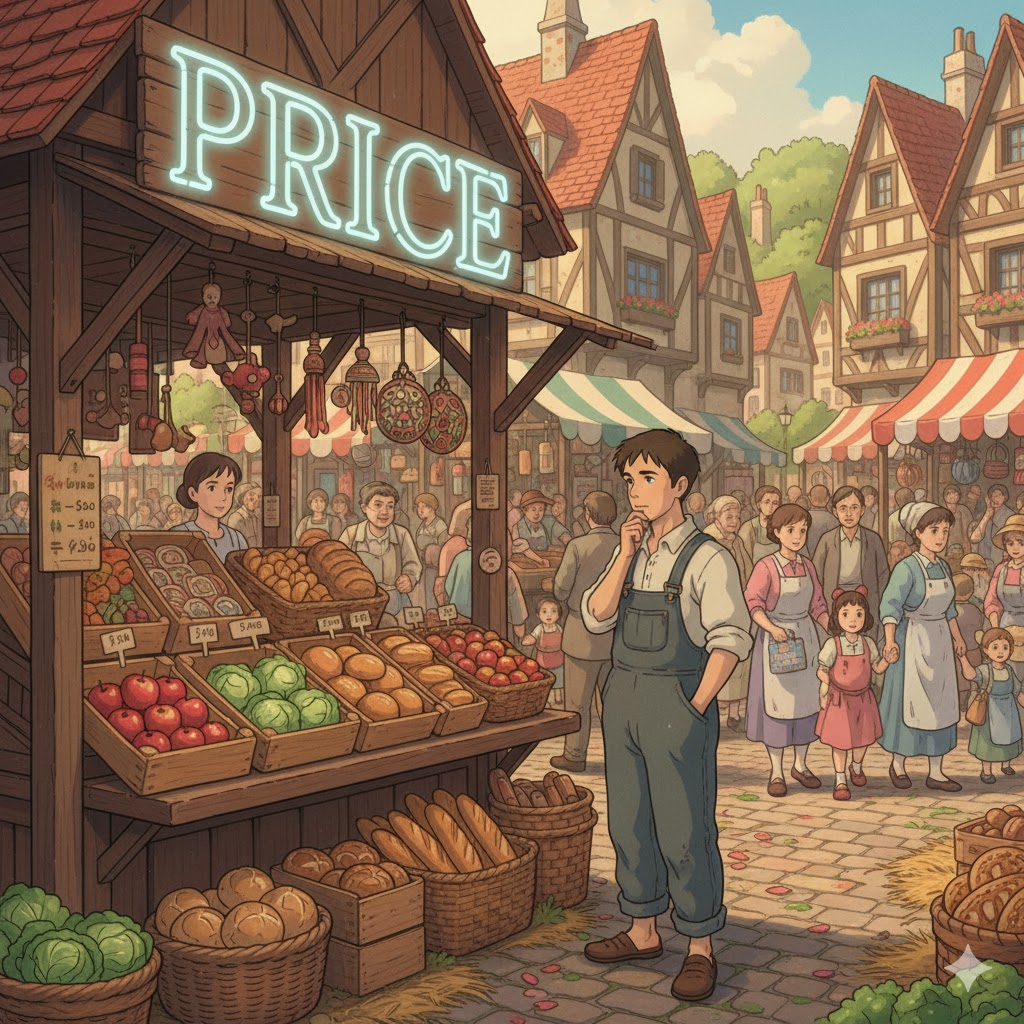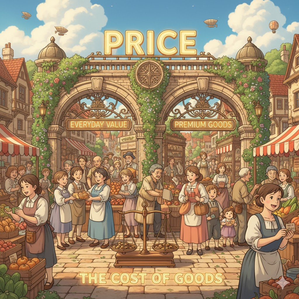 가격, 값. 상품의 금전적 가치, 그 변동 상태, 그리고 공식적인 표시.