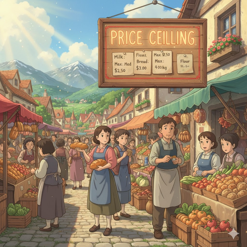 - 해석: 정부가 특정 상품의 가격을 통제하기 위해 법적으로 설정한 최대 판매 가격.
