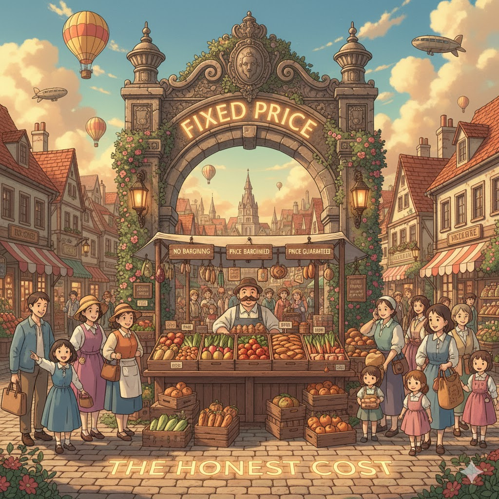 - 해석: 구매자와 판매자 간의 협상 없이 변하지 않고 정해진 가격.