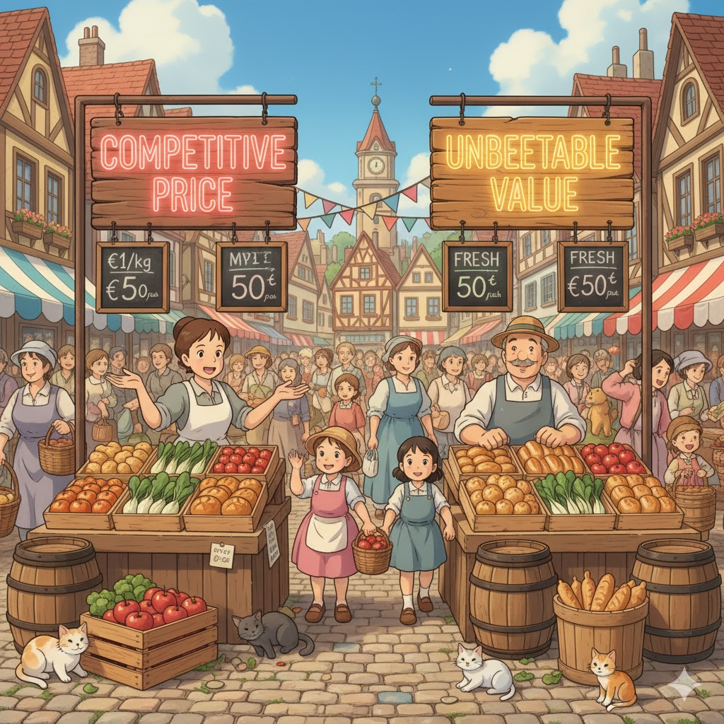- 해석: 다른 경쟁사의 상품보다 낮거나 비슷한 수준으로, 소비자에게 매력적으로 느껴지는 가격.