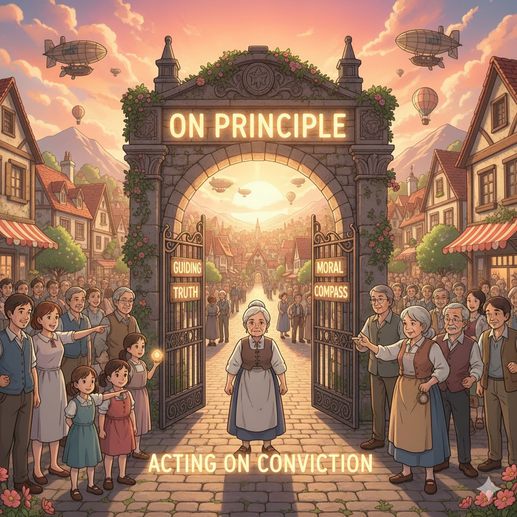 원칙, 원리. 행동이나 사고의 근본적인 규칙, 그리고 그 적용 방식.