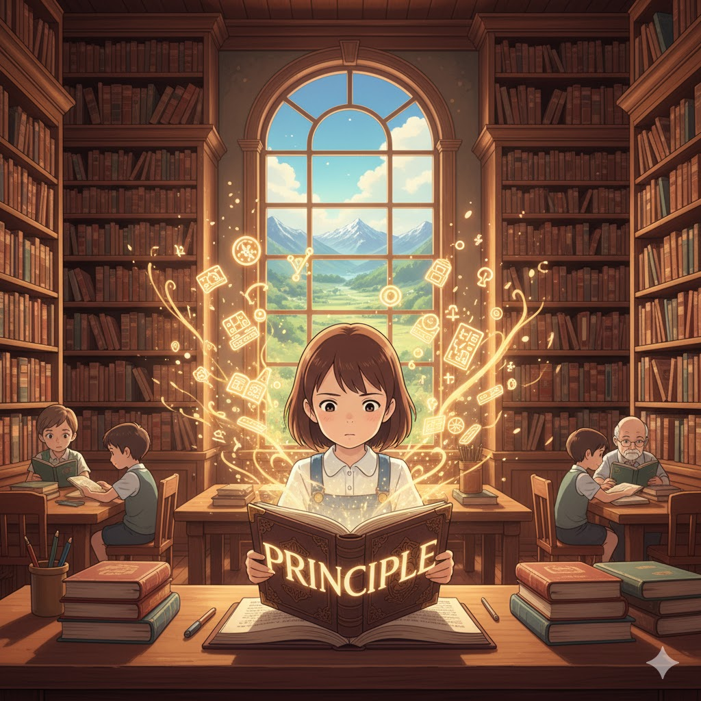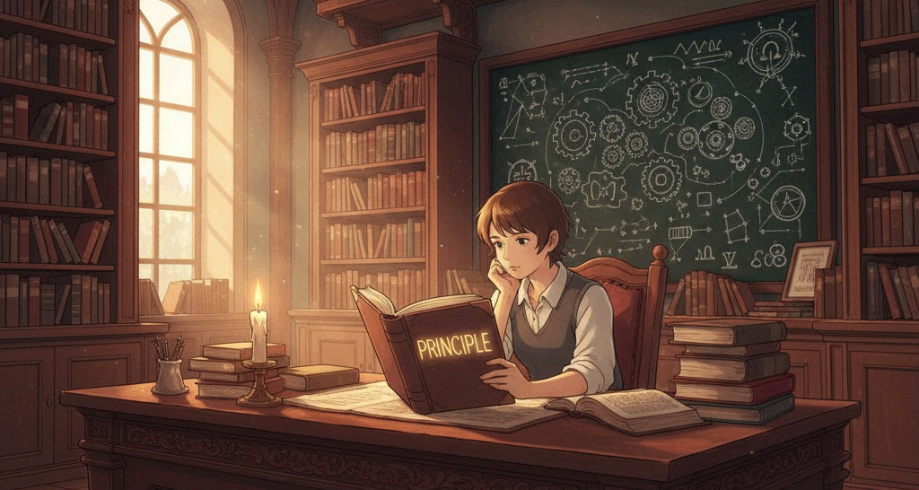 | 라틴어 principium (시작, 근원, 기초) | "가장 먼저 오는 것, 기초" | 행동과 도덕의 원칙/신념 → 자연과 과학의 법칙/원리 → 재정의 원금/자본 |