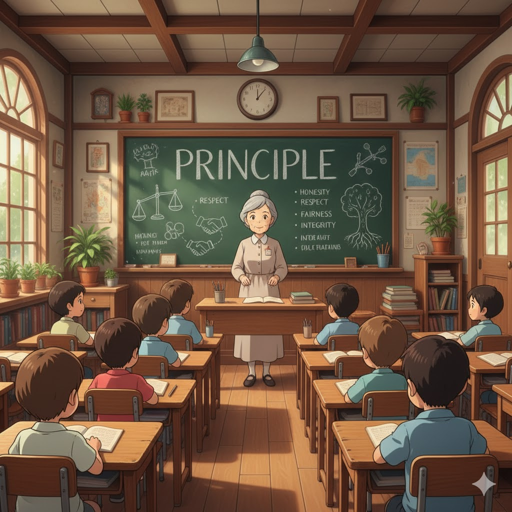principle [ˈprɪnsəpl] 행동의 기준이 되는 생각, 도덕적 기준