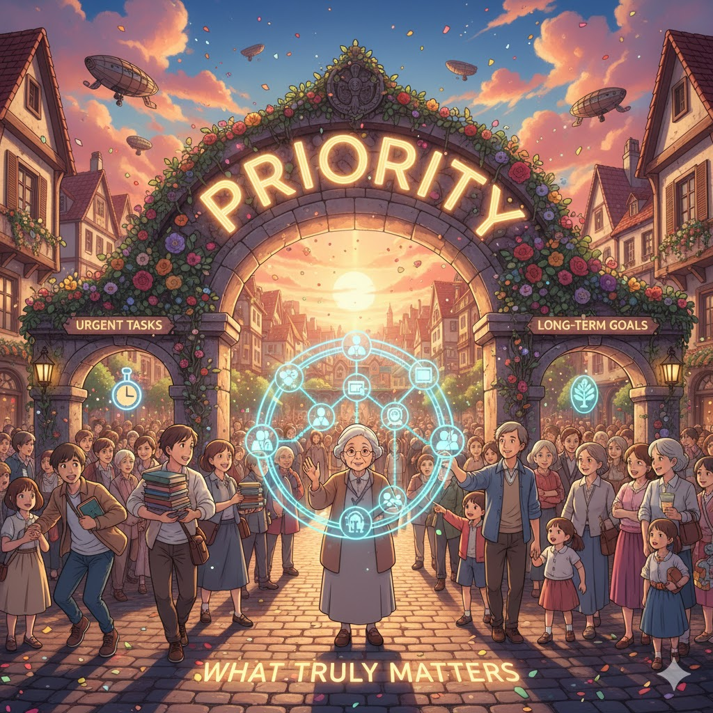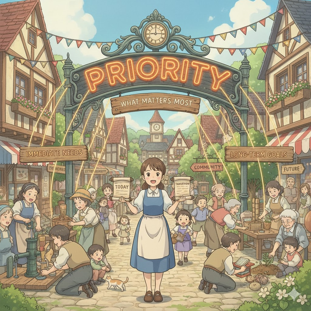 - 해석: 다양한 목표나 작업들 중에서 중요도와 긴급도를 고려하여 처리 순서를 결정하는 행위. (계획 수립의 핵심)