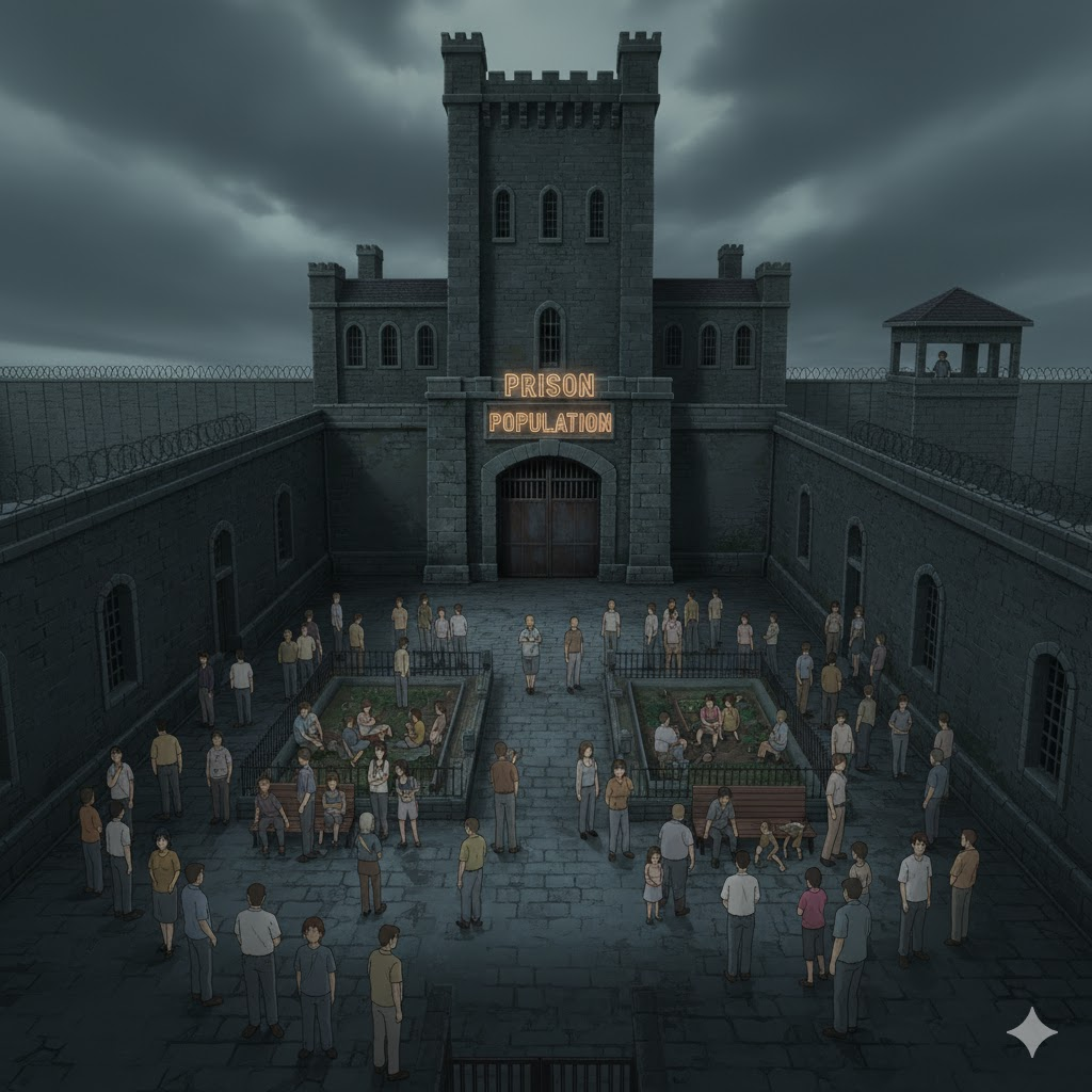 - 해석: 특정 시점에 교도소에 수감되어 있는 총 인원 또는 그 규모. (범죄학, 사회학 지문에서 중요)