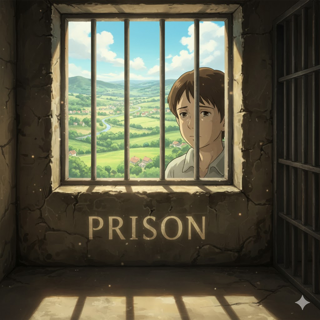 | 라틴어 prehensio (붙잡음, 구금) → 고대 프랑스어 prison | "붙잡아 가두는 곳" | 범죄자를 가두는 감옥/교도소 → 구금 상태 → 심리적/사회적 속박/제한 |