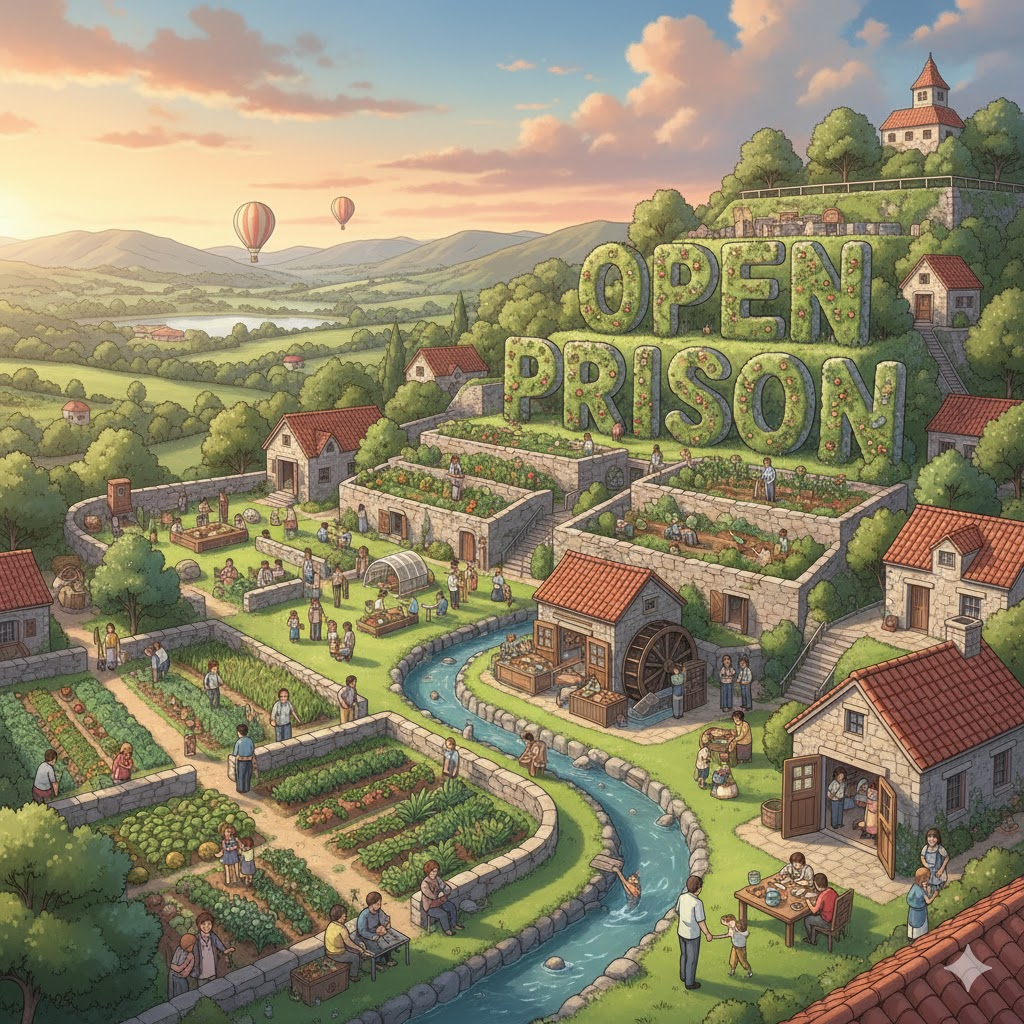 - 해석: 탈출 위험이 낮고 재사회화 목적이 강한 수감자를 수용하며, 상대적으로 규제가 덜 엄격한 교도소. (maximum security prison과 대비)