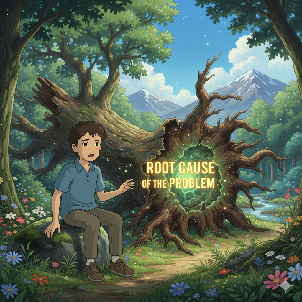 - 해석: 문제가 발생하도록 유발한 가장 깊고 최초의 원인.