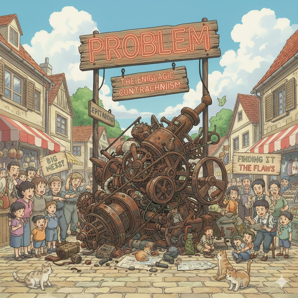 - 해석: 다양한 요소들이 얽혀 있어 단순한 해결책으로는 해결하기 어려운 문제. (단순 문제와 대비)