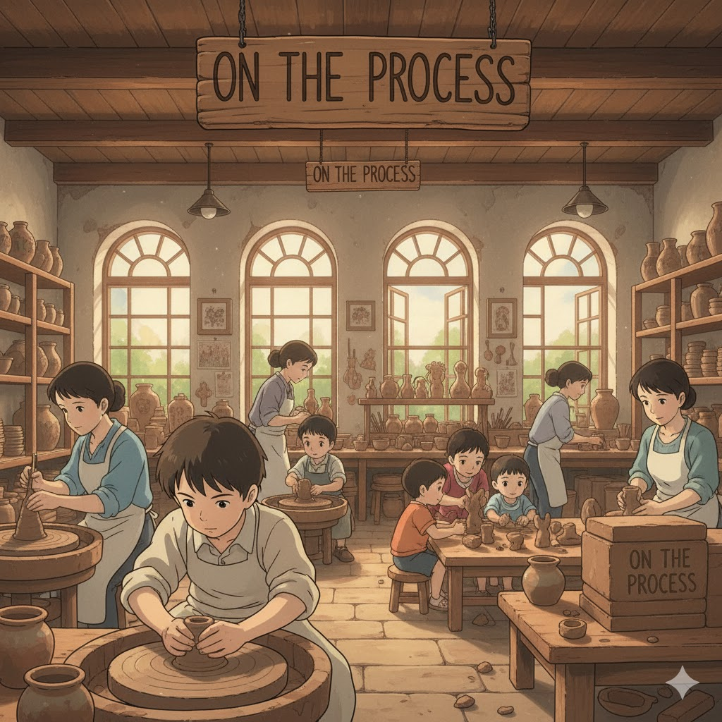 (명사) 창작 과정, 창의적인 과정