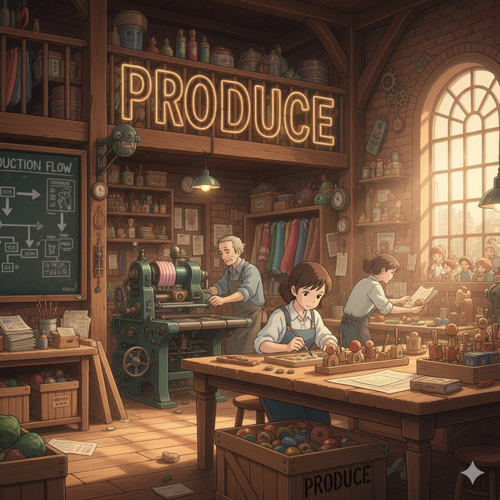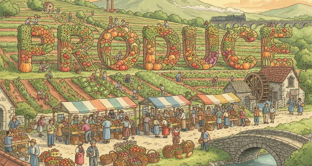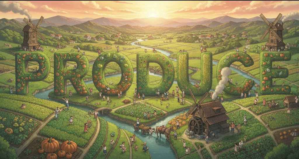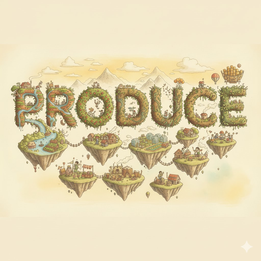 | 라틴어 prōdūcere (앞으로 이끌어내다) | "숨겨진 것을 밖으로 꺼내다" | 물리적인 생산/제조 → 농업의 농산물/수확 → 예술적 제작/연출 → 결과 초래 |