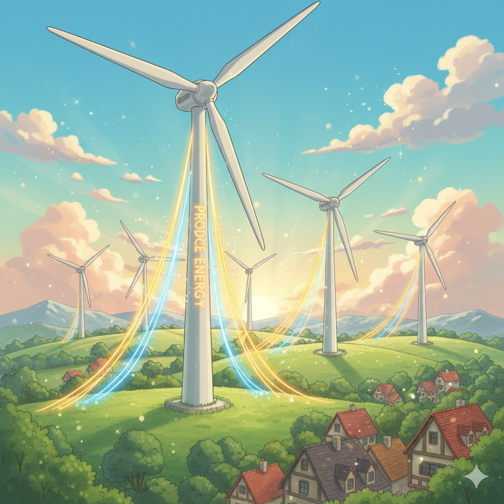 - 예문: Solar panels produce energy by converting sunlight directly into electricity. (태양광 패널은 햇빛을 직접 전기로 변환하여 에너지를 생산한다.)