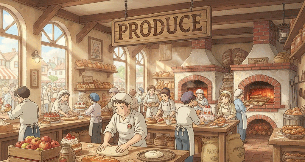 produce [prəˈduːs] 재료를 가공해 결과를 만들어내는 행위를 뜻하는 단어.