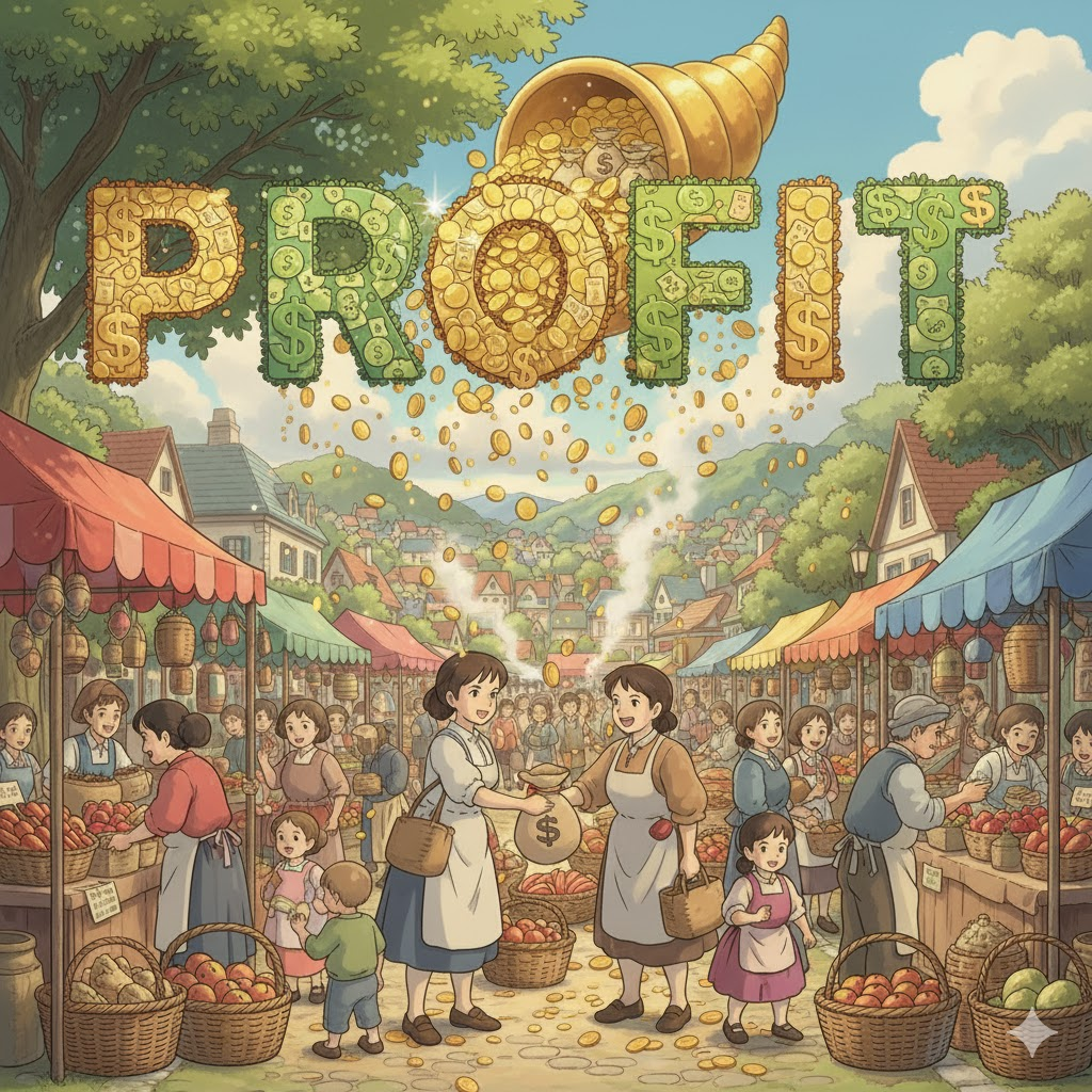 - 해석: 비용보다 더 많은 수익을 얻어 금전적인 순이득을 얻는 행위.