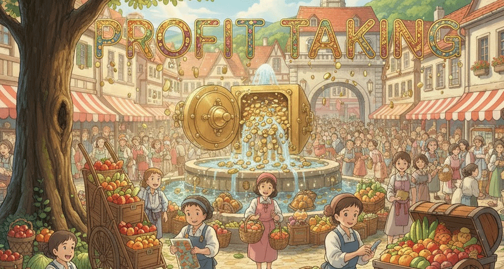 '투자자'(investor)가 '주식'(stock)이나 '자산'(asset)의 '가격'(price)이 '상승'(rise)하여 '이익'(profit)이 '발생'(happen)했을 때, '추가적인'(further) '상승'을 '기대'(expect)하기보다 '현재'(present)의 '이익'을 '확정'(secure)하고 '현금'(cash)으로 '회수'(take)하기 위해 '매도'(selling)하는 행위를 의미합니다. '투자'(investment) '전략'(strategy)의 '일부'(part)입니다.