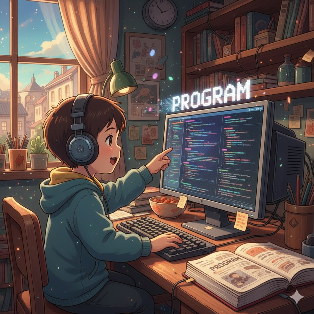 | 명사 (N.) | 컴퓨터 프로그램 | 컴퓨터에게 일을 시키는 명령 코드의 묶음 (소프트웨어). | I downloaded a new editing program. (나는 새로운 편집 프로그램을 다운로드했다.) |