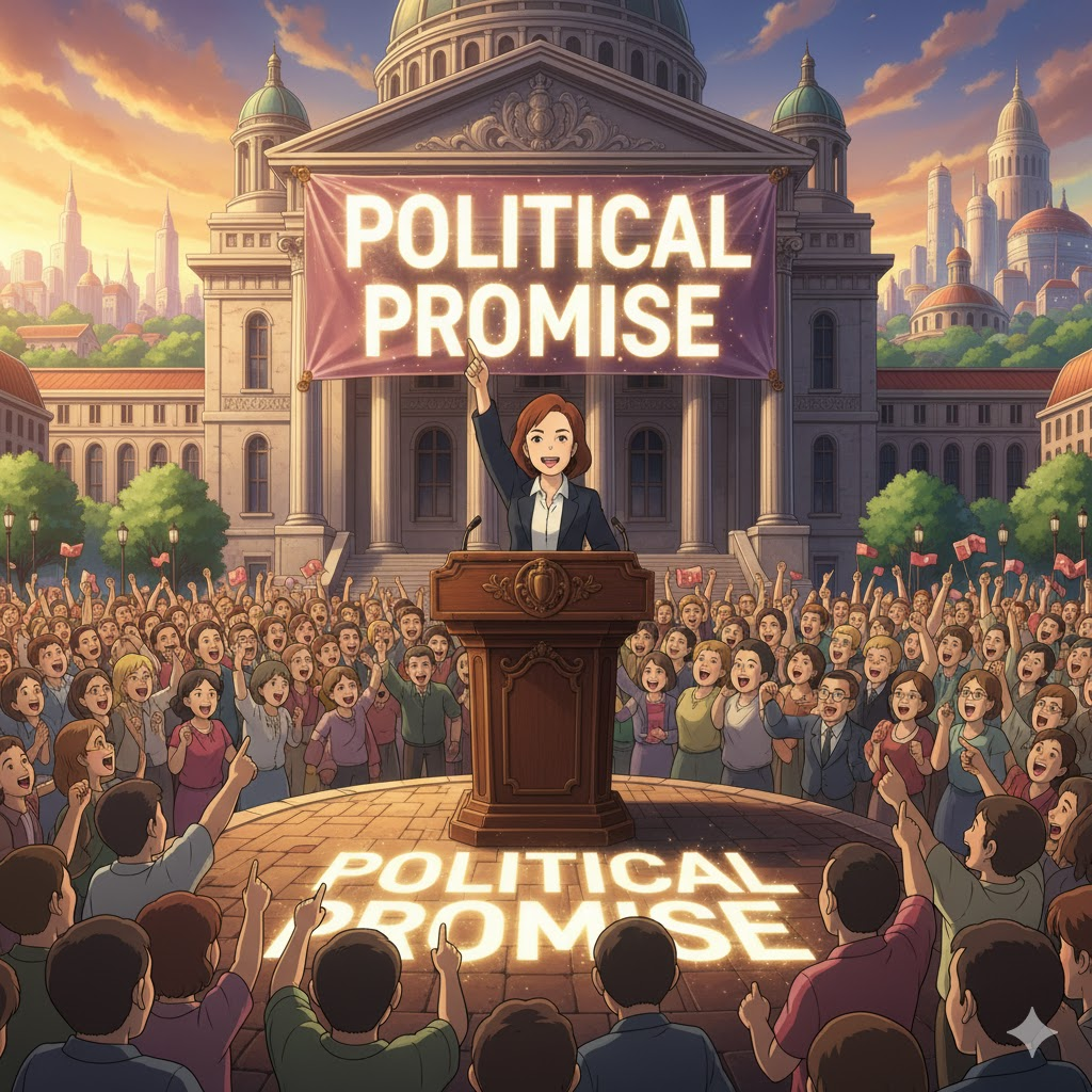 political promise [pəˈlɪtɪkəl ˈprɑːmɪs]