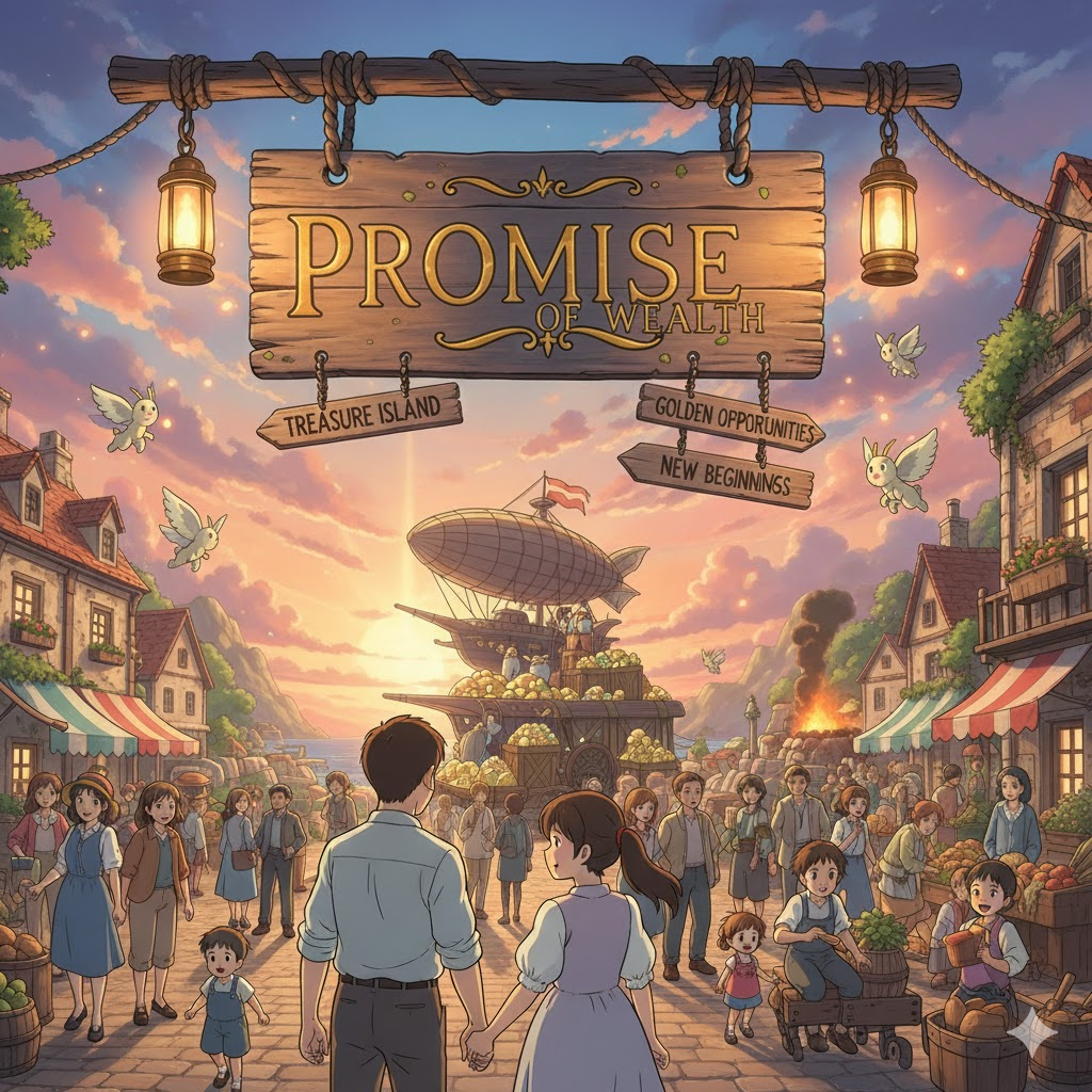 promise of wealth [ˈprɑːmɪs əv welθ]