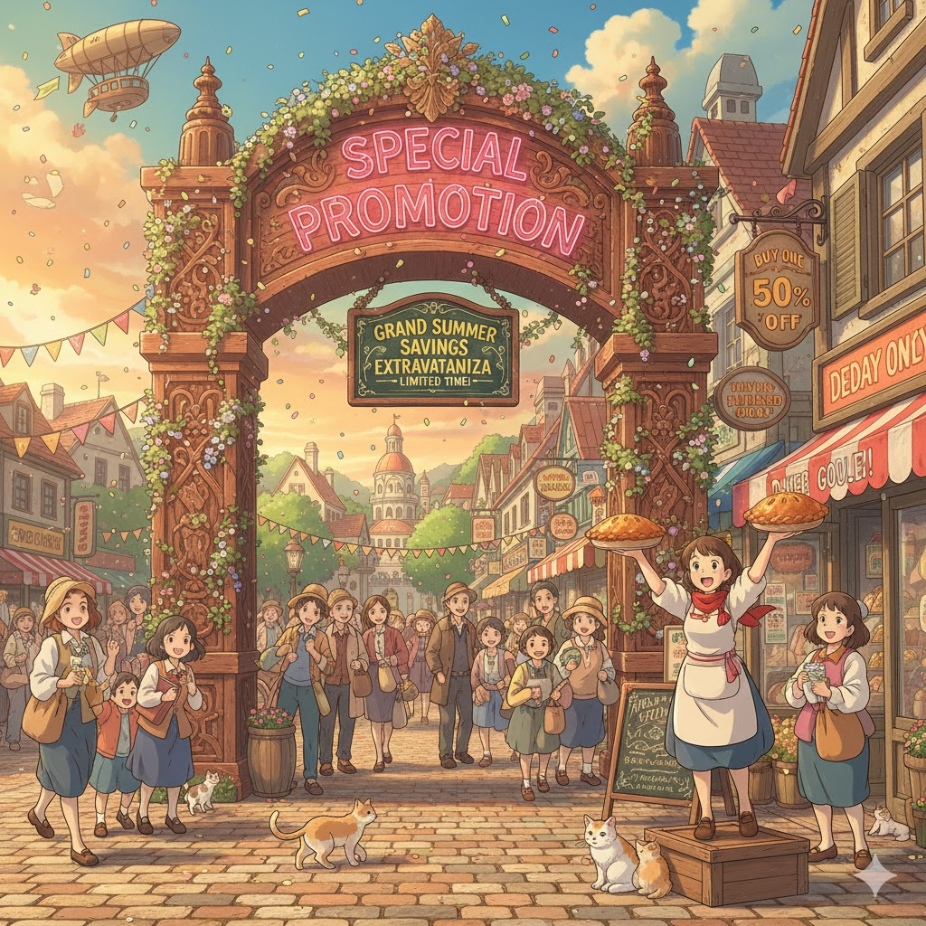 - 해석: 단기간 동안 매우 매력적인 조건 (예: 파격 할인, 추가 증정)을 제공하는 판매 증진 활동.