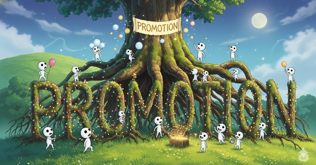 | 라틴어 prōmōtiō (앞으로 움직임, 전진) | "더 나은 곳으로 이끌어냄" | 직장에서의 승진/진급 → 상품의 판매 촉진/홍보 → 사업이나 계획의 장려/후원 |