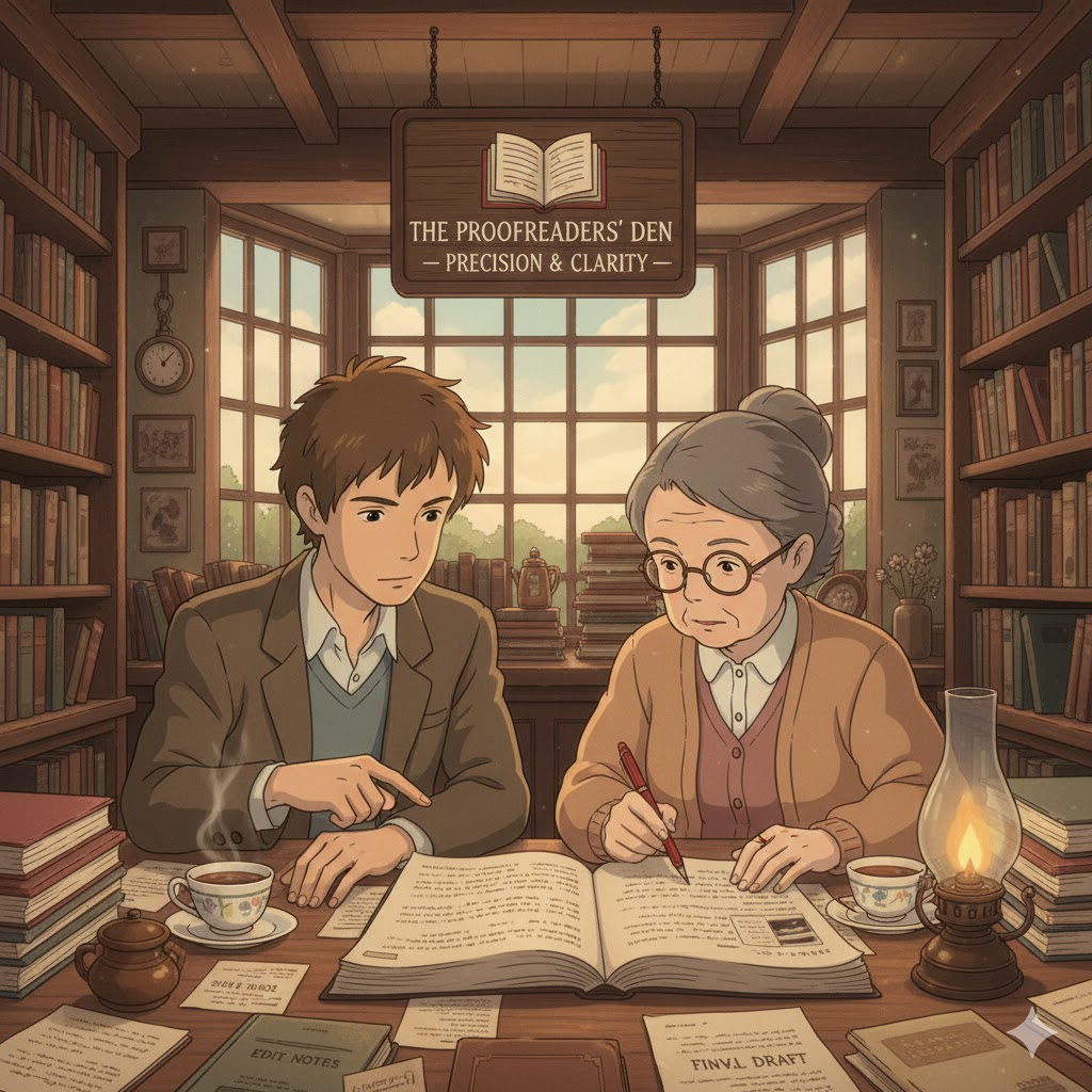 '문서'(document), '기사'(article), 또는 '원고'(manuscript)를 '출판'(publication)이나 '제출'(submission) '전'(before), '철저하게'(thoroughly) '검토'(review)하여 '오류'(error), '오탈자'(typos), 또는 '문법'(grammar) '실수'(mistake)를 '찾아내고'(find out) '수정'(correct)하는 행위를 의미합니다. '정확성'(accuracy)과 '품질'(quality) '향상'(improvement)을 강조합니다.