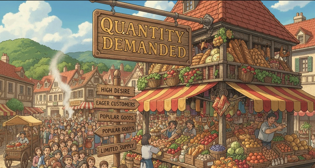 - 해석: 특정 가격 수준에서 소비자들이 구매하고자 하는 재화나 서비스의 총량.
