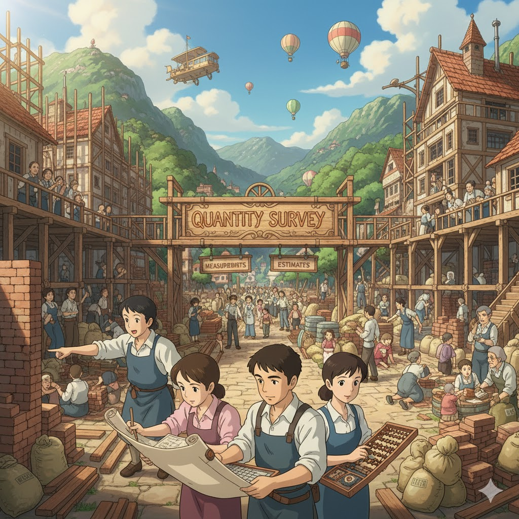 - 해석: 건설 프로젝트에서 필요한 모든 자재, 노동력, 장비 등의 정확한 양을 측정하고 계산하는 과정.