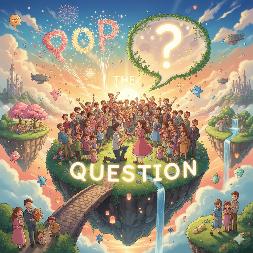 - 예문: He surprised her during their vacation and popped the question on the beach at sunset. (그는 휴가 중 그녀를 놀라게 했고 일몰 무렵 해변에서 청혼했다.)