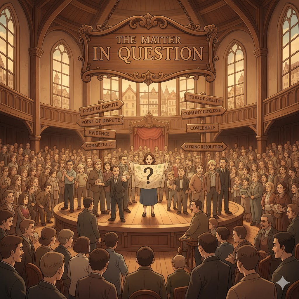 | 라틴어 quaestio (질문, 탐구) | "답변을 찾기 위해 묻는 것" | 정보 획득을 위한 질문 → 해결해야 할 문제/쟁점 → 의심/논란의 여지 |