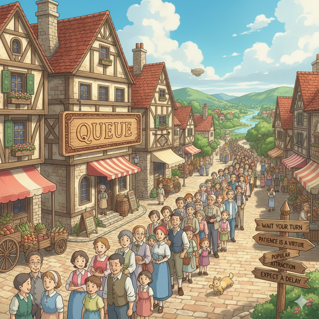 jump the queue, checkout queue, service queue, virtual queue, queue discipline