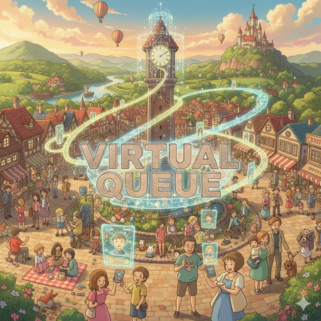 - 예문: Theme parks often use a virtual queue system to allow guests to wait for rides electronically. (테마파크는 종종 가상 대기열 시스템을 사용하여 손님들이 전자적으로 놀이기구를 기다릴 수 있도록 한다.)