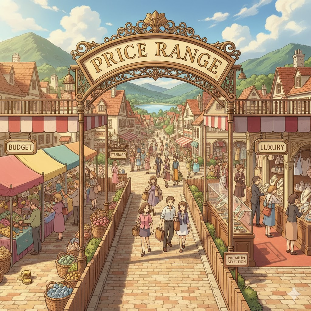 - price range는 소비자들이 구매 결정을 내리는 기준과 시장의 경쟁 구조를 설명합니다. 기업들은 특정 가격대 내에서 품질과 기능을 최적화하여 경쟁 우위를 확보하려는 전략을 사용합니다.