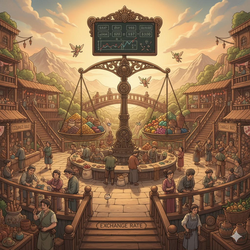 - exchange rate는 세계 경제가 어떻게 상호 의존적인지 보여줍니다. 환율 변동이 수출입, 국가 경쟁력, 무역 균형에 미치는 영향을 논하며, 국제 금융 시장의 역학 관계를 설명하는 데 필수적입니다.