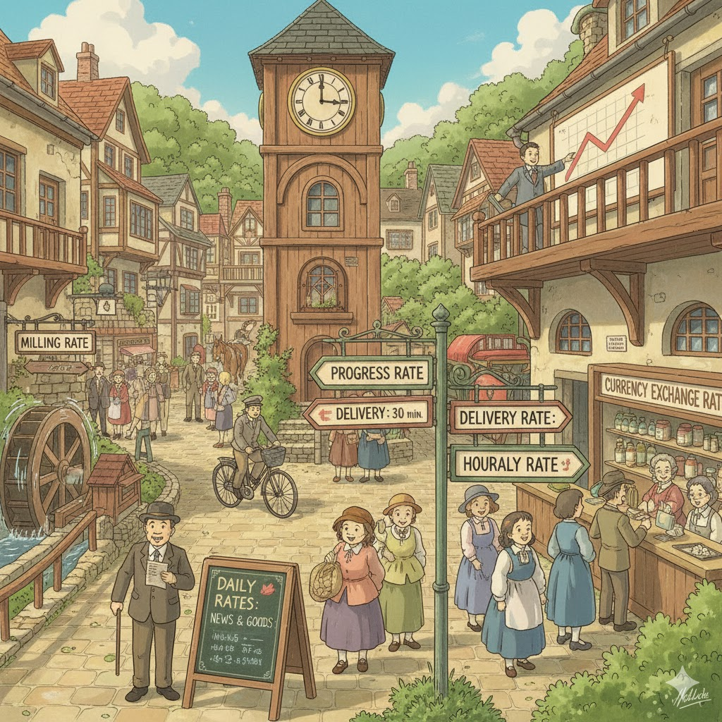 | 라틴어 rata (정해진 부분) | "정해진 비율" | 비율/속도 (시간 대비) → 가격/요금 → 평가/등급 |