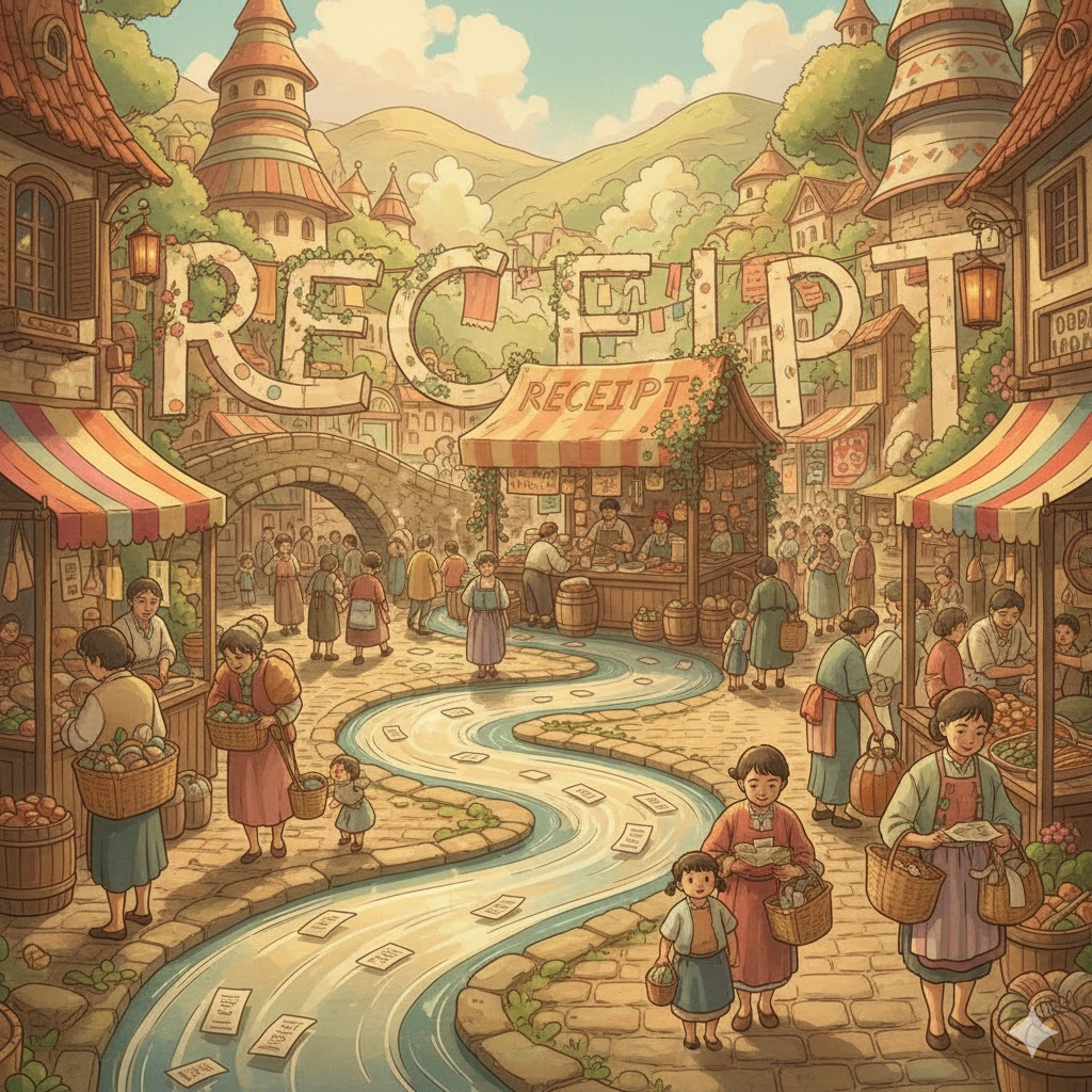 - 해석: 상품이나 서비스를 구매하고 대금을 지불했다는 사실을 증명하는 문서. (가장 일반적인 영수증)