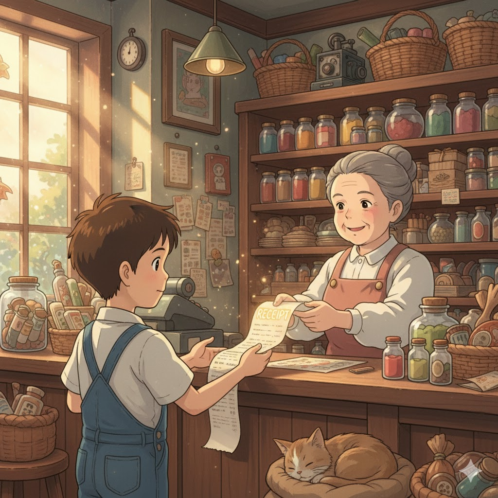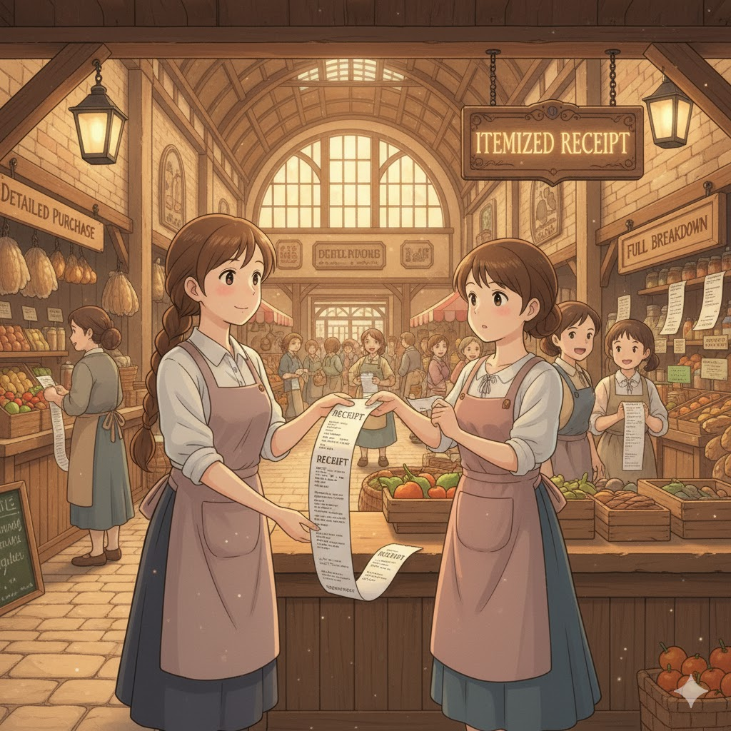 - 해석: 총액만 표시된 것이 아니라, 구매한 모든 개별 품목과 가격이 상세하게 나열된 영수증.