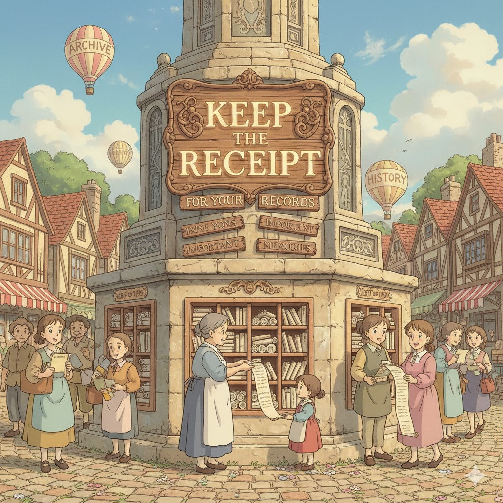 - 해석: 나중의 증명, 환불, 또는 보증을 위해 영수증을 버리지 않고 보관하는 행위.