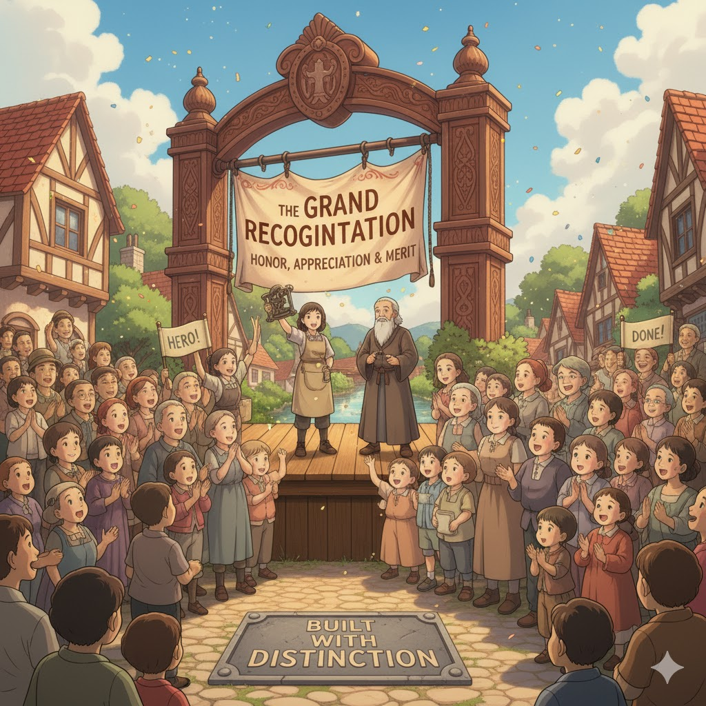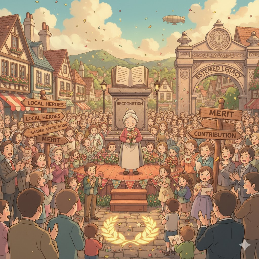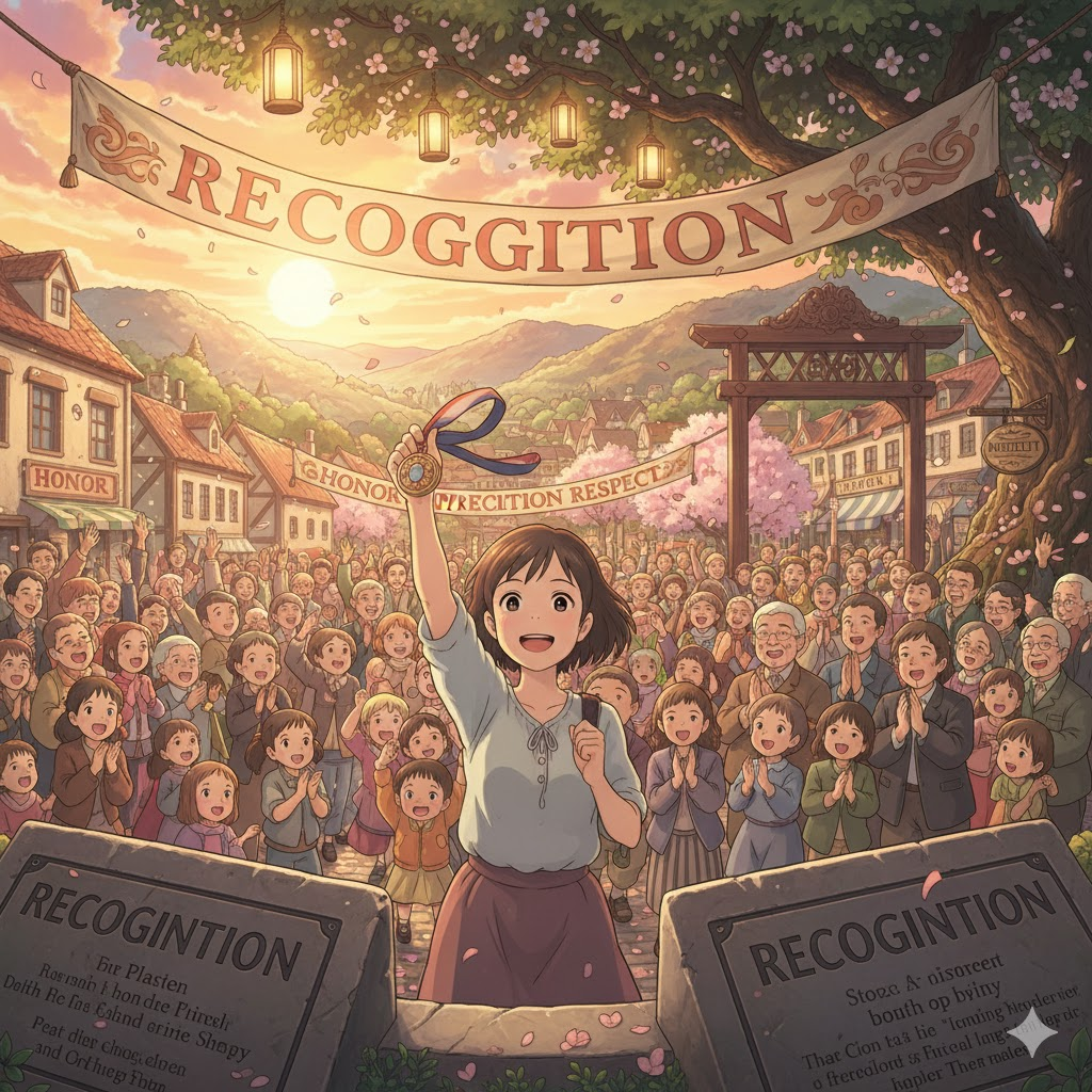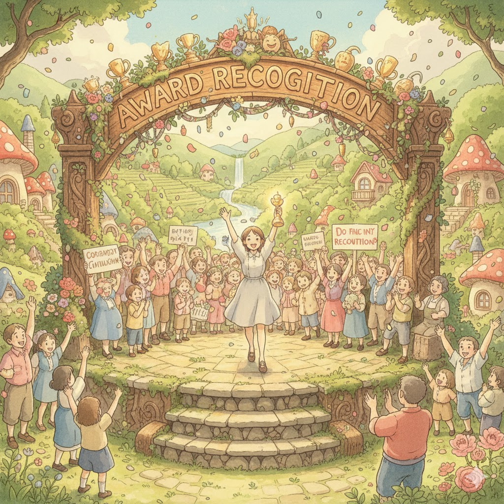 - 해석: 뛰어난 성과나 공로에 대해 상장이나 상금을 통해 공개적으로 인정하는 행위.