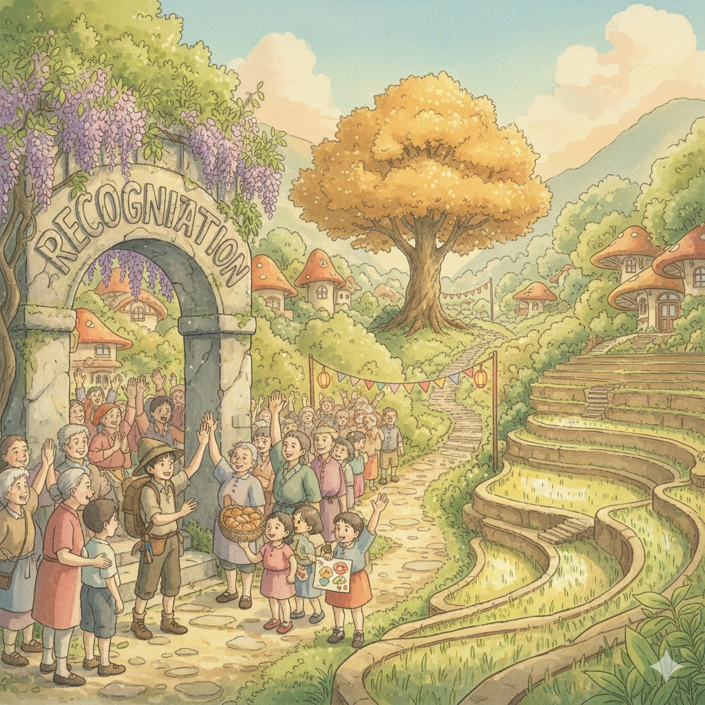 | 종합 뉘앙스 | 이전에 경험한 것을 바탕으로 사물이나 사람을 식별하거나, 타인의 가치를 공식적으로 인정하는 행위. | '재인지 및 공식 인정' |
