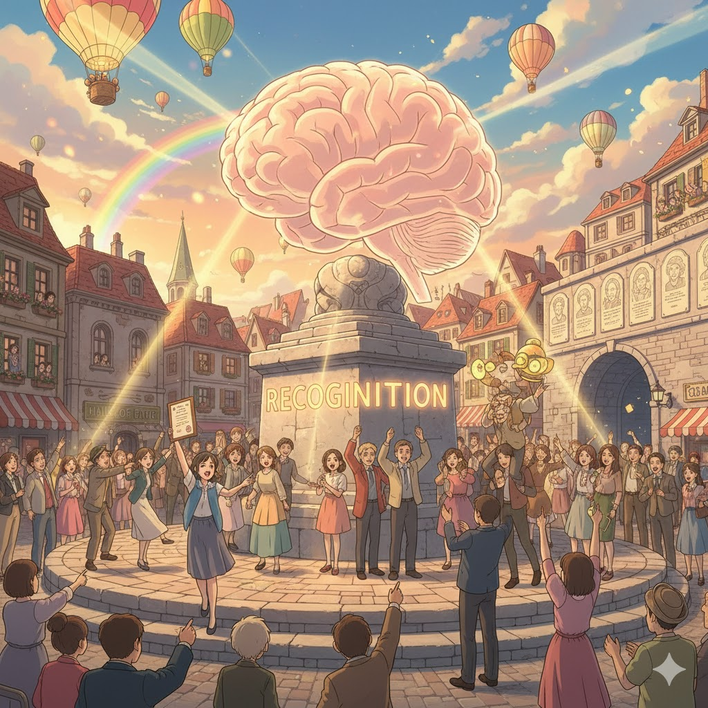 'recognition'은 기술 혁신(AI), 개인 및 집단의 정체성, 사회적 보상 및 동기 부여, 그리고 법적 승인을 다루는 기술, 심리, 사회, 정치 지문에서 가장 핵심적인 개념입니다.