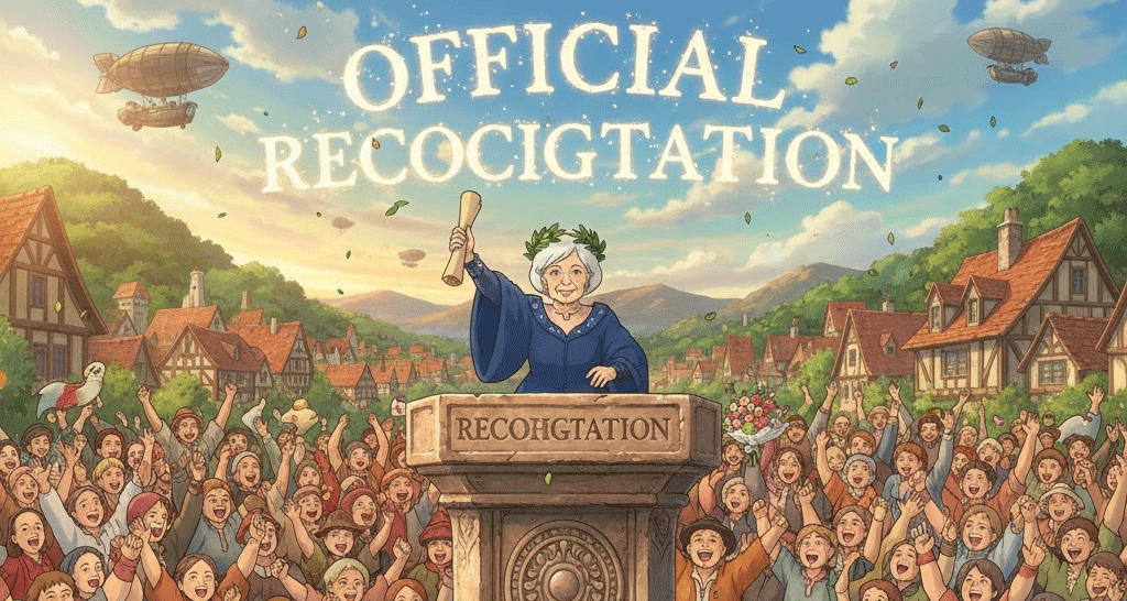 official recognition [əˈfɪʃəl ˌrekəɡˈnɪʃən]