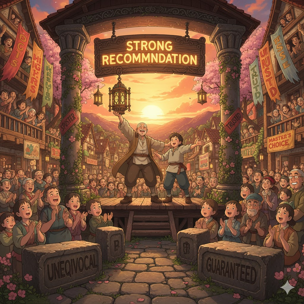 - 해석: 공식적인 기관의 평가가 아닌, 개인의 경험과 신뢰를 바탕으로 하는 추천.