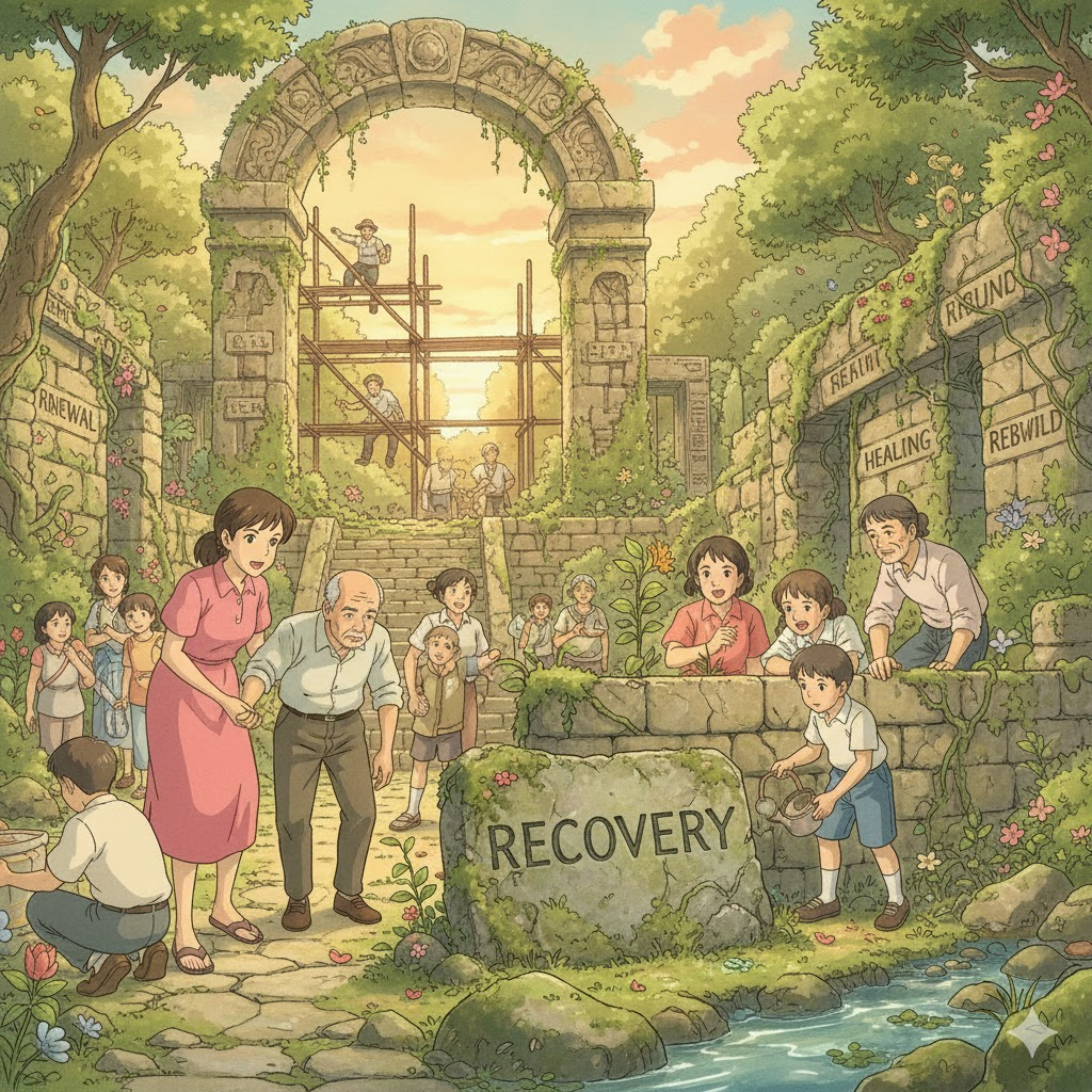 - 해석: 트라우마, 스트레스, 또는 정신 질환으로부터 심리적인 안정을 되찾는 과정.
